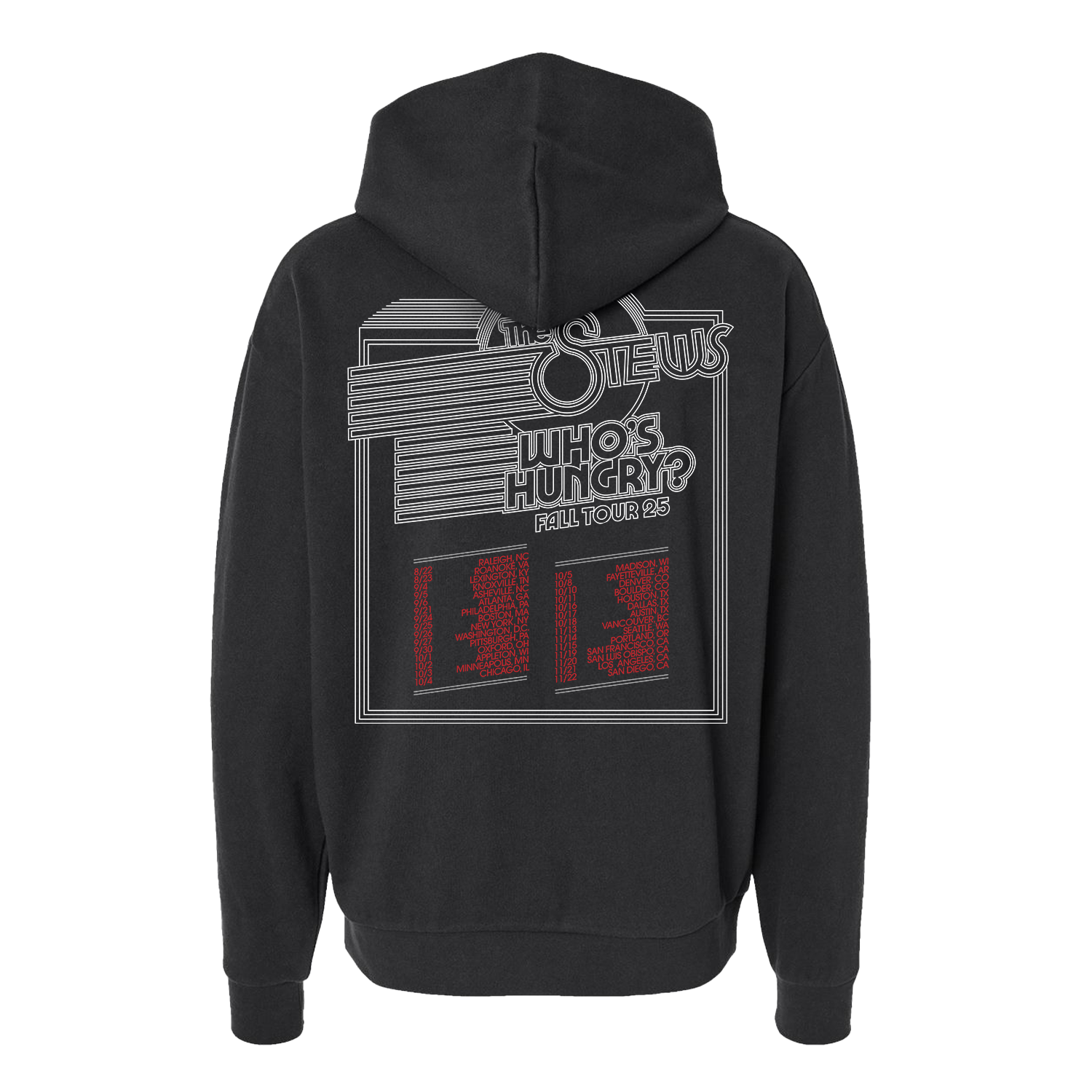 Fall 2025 tour hoodie with the dates on the back.